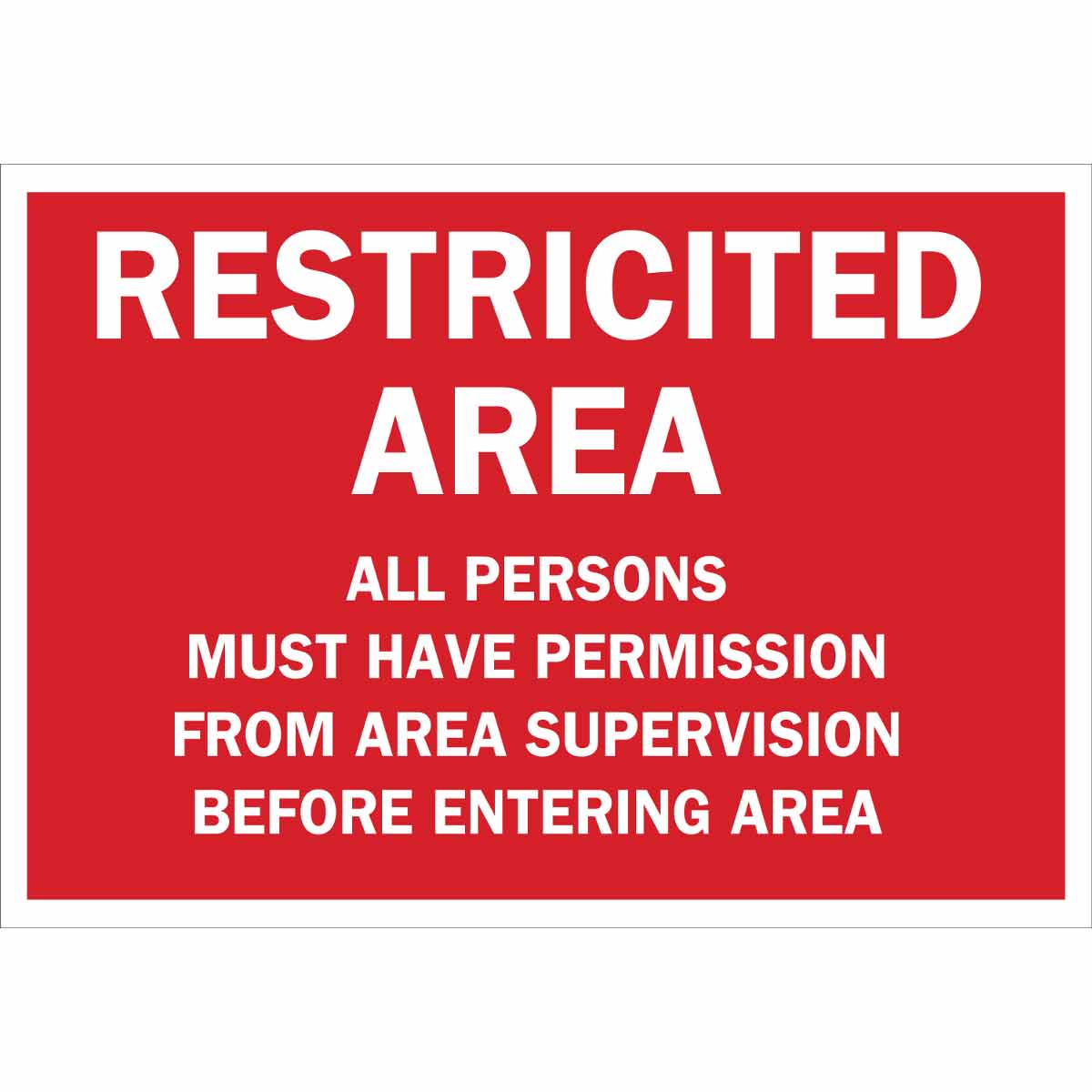 RESTRICTED AREA All Persons Must Have Permission From Area Supervision Before Entering Area Sign, 14" H x 20" W x 0.1" D, Fiberglass