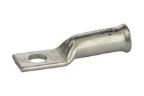1 Hole Long Barrel Copper Compression Lug for Flexible Copper Cable 2/0 AWG - 3/8" Bolt Compression lugs for flexible copper cables are connects that have a gentle, continuous flared end to ensure ease of cable insertion of flexible and extra flexible cables such as locomotive, welding, mining cable and more. The flared end also reduces pressure on the cable strands after installation and protects them from chafing and breakage as a result of cable movement. Tin-plated for corrosion resistance. Rated 600 volts for copper cables only. Single mounting hole.