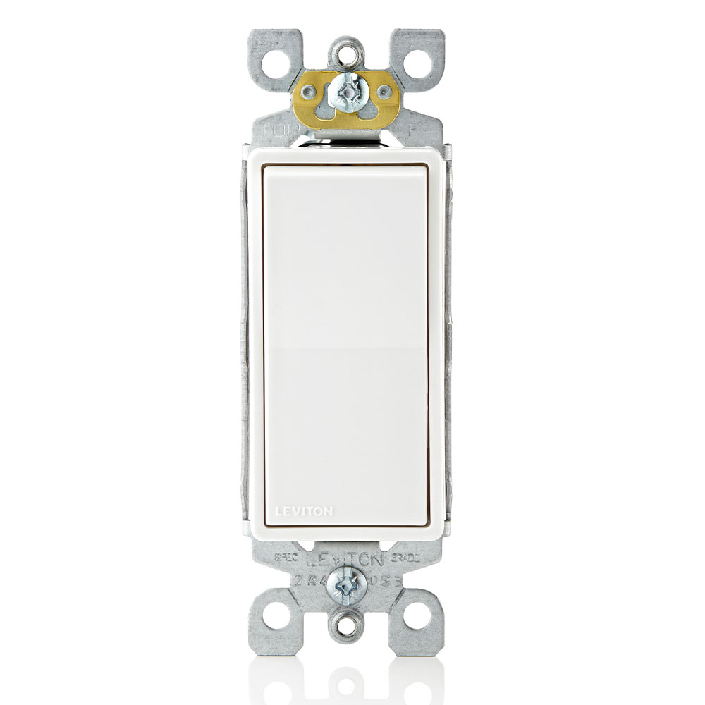 Switch Decora. Standard On/Off Molded In Rocker. Single Pole 15A-120/277V AC. Standard Grade. Cof Light Almond Rocker. Light Almond Frame. With-side Wire And Quickwired For Push-in Wiring. Grounding Strap Terminal Screws Out Mounting Screws. And Washers Und Lab Inc List Stamped On Strap.
