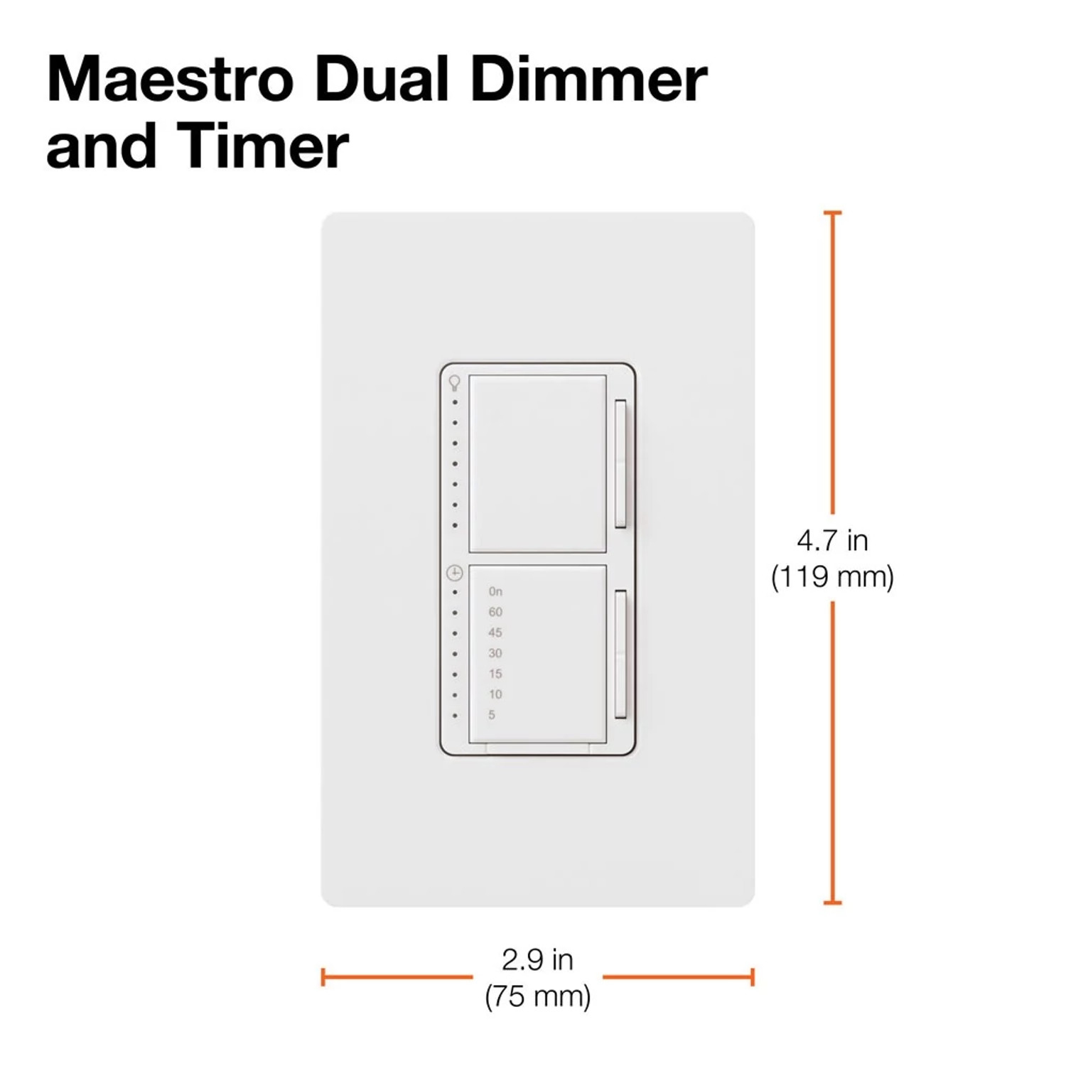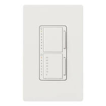 Maestro Dual Incandescent/Halogen Dimmer and Switch, Single-pole, clamshell packaging, wallplate included, White finish, 120V/300W dimmer, 2.5A switch in snow