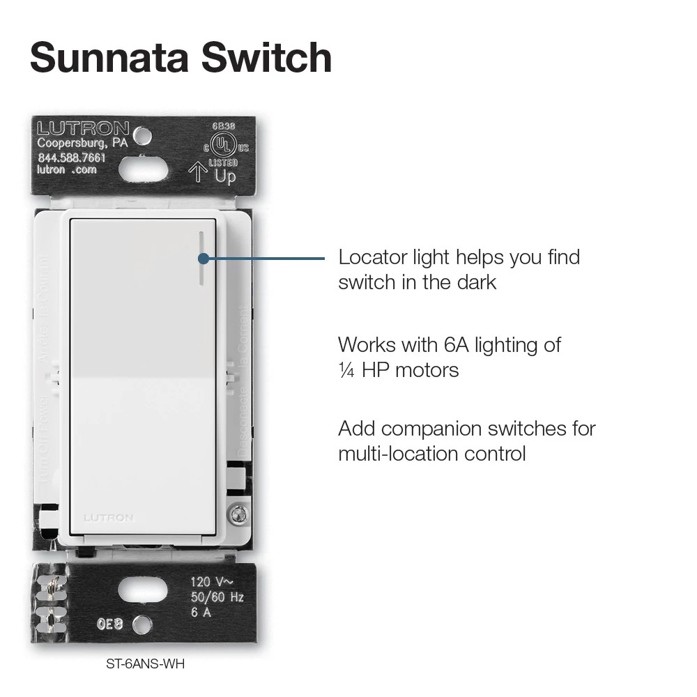 Lutron Sunnata Switch, for 6A Lighting or 3A 1/10HP Motor, Single Pole/Multi Location, Espresso